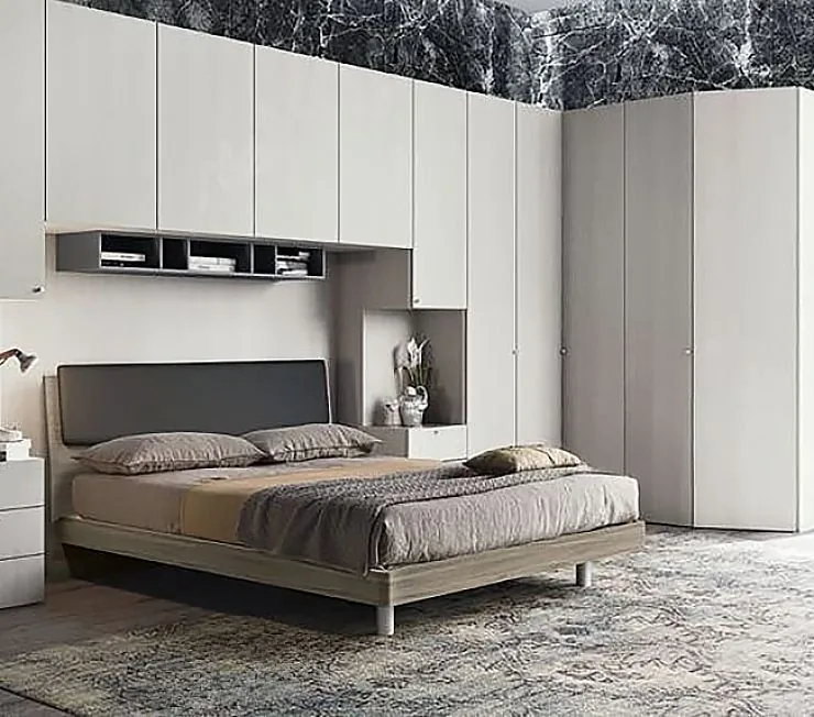 Угловой шкаф на всю стену для спальни с антресолями над кроватью, дополненный навесными полками для аксессуаров. Нейтральный оттенок фасадов и корпуса идеально впишется в обстановку просторной спальни. Изготавливается из высококачественной ЛДСП “Эггер” (Австрия), долговечность и удобство обеспечивает фурнитура “Hettich”. Изготавливается под заказ, в зависимости от размеров комнаты.
