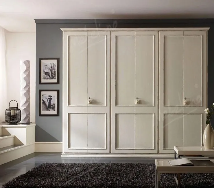 Белый корпусный шкаф в стиле «Классик». Корпус изготовлен из надежного материала ЛДСП «Эггер»; фасады сделаны из матовой эмалированной МДФ-плиты.