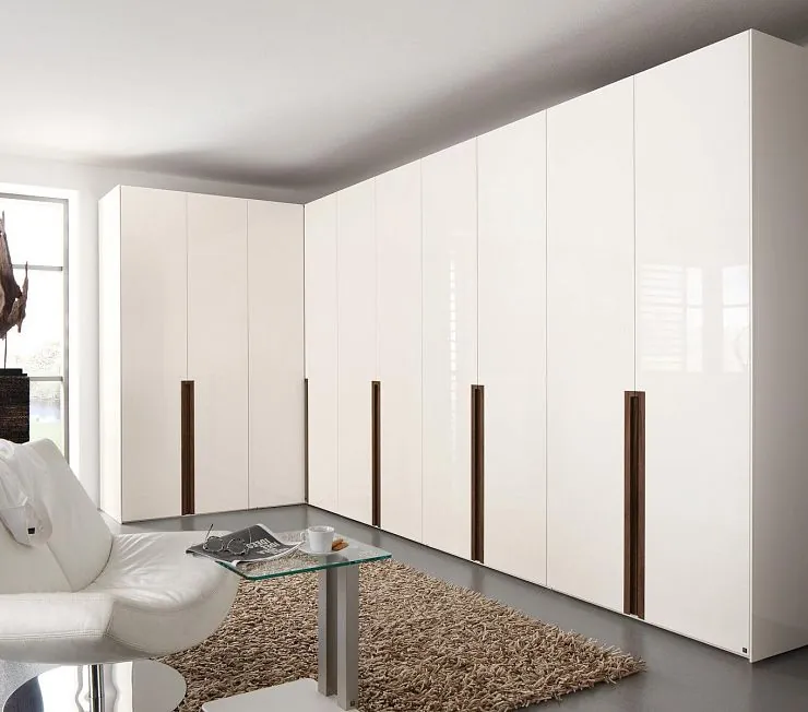 Светлый корпусный шкаф из ЛДСП "Egger". Двери выполнены из МДФ в глянцевой эмали. Возможно выполнение из МДФ в шпоне. Задаёт строгий стиль помещения. Продажа от фабрики.