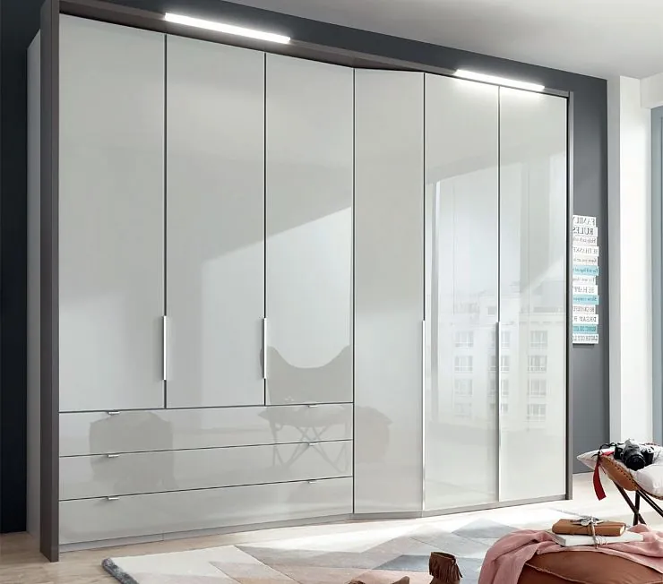 Большой шестистворчатый шкаф из ЛДСП “Egger” с фасадами МДФ в белой глянцевой эмали. Модульная конструкция позволяет расположить мебель с максимальным удобством. Дополнительно оборудован 3 широкими выдвижными ящиками и секцией платяного шкафа. Для максимального удобства шкаф оснащен фронтальной подсветкой. При необходимости наполнение может быть адаптировано под гардеробную или гостиную. Производится под заказ. необходим выезд нашего дизайнера.