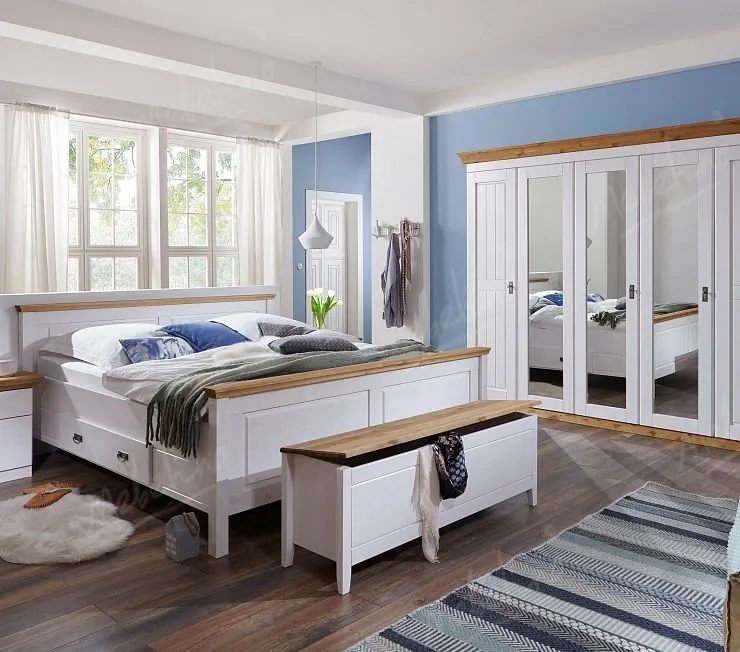Корпус- МДФ в эмали матовой, массив дерева, ЛДСП "Egger" ; фасады - МДФ в эмали матовой, зеркало серебро.