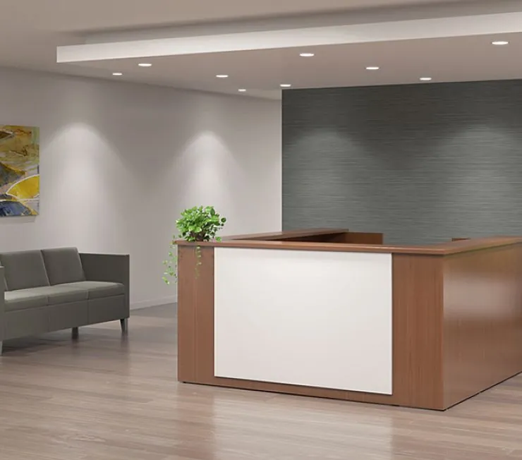 Классический предмет обстановки с прямыми гладкими поверхностями и большой зоной для администратора