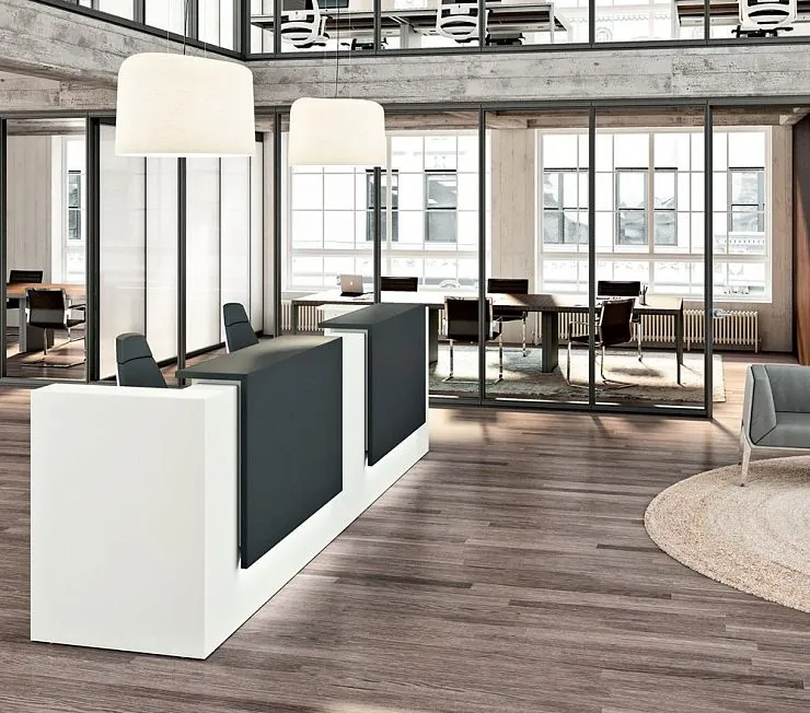 Черно-белая модель, что отличается строгими линиями и отсутствием декора. Может служить для разделения пространства на рабочую зону и место с диванами для отдыха, а также проведения бизнес-встреч и консультаций с партнерами.