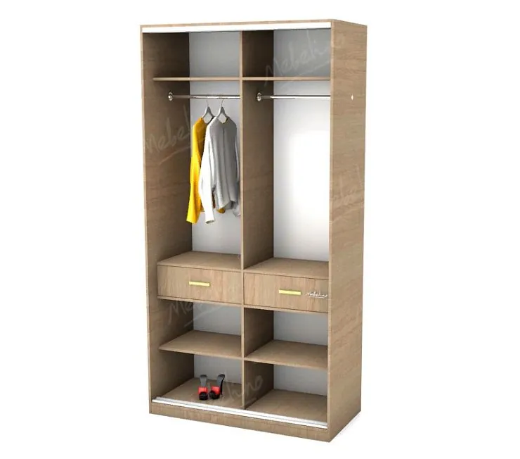 В наполнении данного шкафа используются: 4 полки; 2 ящика; 2 штанги.