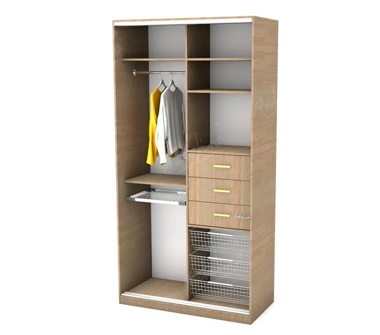 В наполнении данного шкафа используются: 4 полки; 3 штанги; 3 ящика; 1 полки для брюк; 4 корзины.