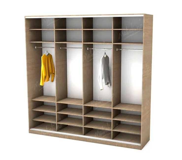 В наполнении данного шкафа используются: 20 полок; 4 штанги.