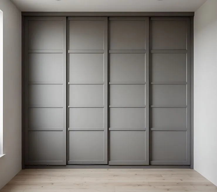 «Matte Grid» — это современный встроенный шкаф с четырьмя раздвижными фасадами в матово-сером исполнении. Чёткая горизонтально-вертикальная раскладка придаёт ему архитектурную строгость и гармонию. Прекрасно подойдёт для минималистичных и скандинавских интерьеров.
