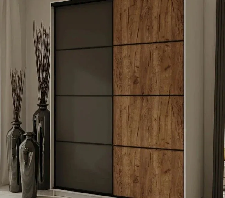 Комбинация древесной фактуры и темного стекла - утонченный дизайнерский ход для интерьеров в благородных неярких тонах. Функциональное наполнение шкафа включает полки и штанги для одежды, а также выдвижные ящики. Корпус - ЛДСП ”Egger”, фурнитура - гарантированная надежность от “Блюм”. Для заказа нужен предварительный выезд нашего специалиста.