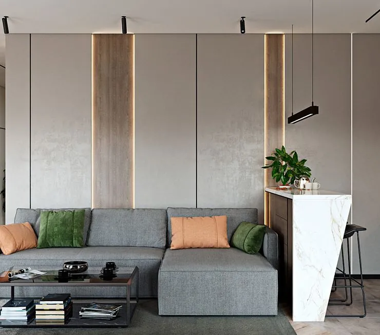 Сделана из МДФ. Служит для разделения внутреннего пространства помещения на функциональные зоны, сочетается с отделкой стен