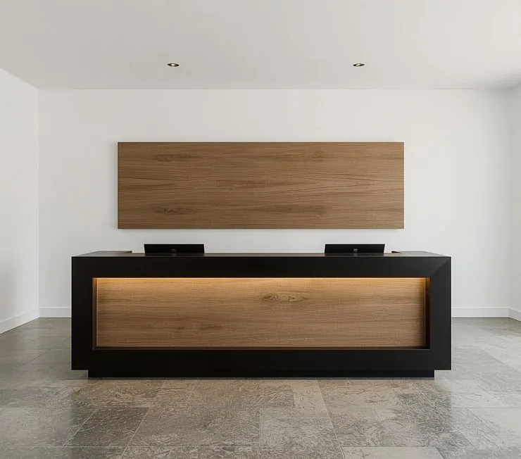 Стойка ресепшн чёрно-дубовая с подсветкой