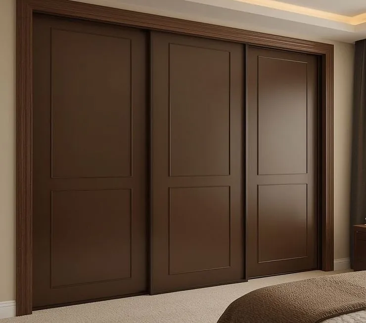 Шкаф-купе TERRA — это сочетание сдержанной элегантности и современного удобства. Глубокий ореховый оттенок фасадов с классическими прямоугольными фрезами делает его универсальным решением как для классических, так и для современных интерьеров.