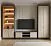Элегантная и функциональная ТВ-зона с выразительными рифлёными фасадами цвета шампань, подчёркнутая глубоким антрацитовым обрамлением. Левая секция включает стеклянные полки с тёплой подсветкой и открытым декором, правая — закрытый шкаф для хранения. Центральная тумба оснащена отсеком для техники и выдвижными ящиками. Стильное сочетание светлого и тёмного делает композицию универсальной для современных интерьеров.