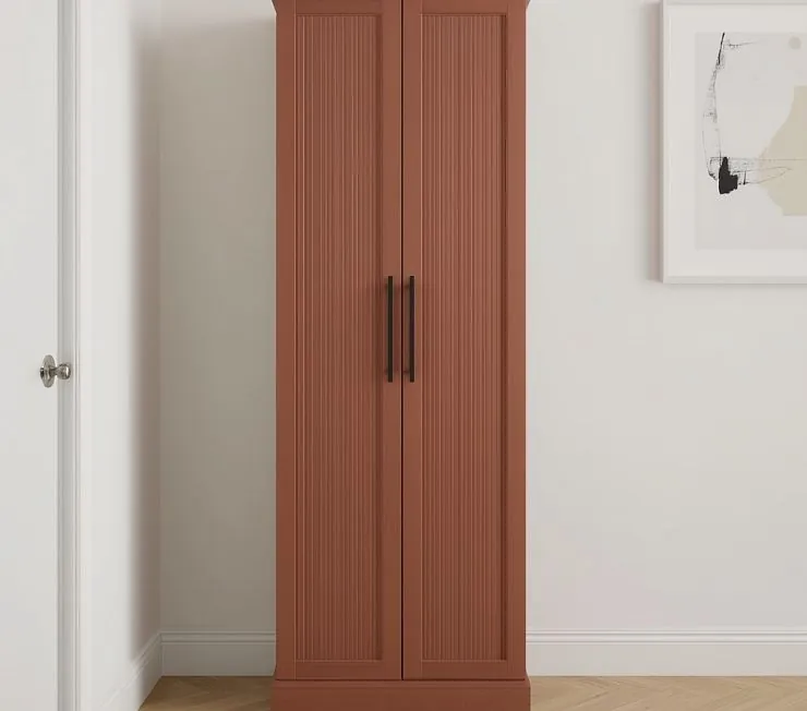 Компактный и стильный обувной шкаф с двумя высокими фасадами, оформленными вертикальной фрезеровкой. Выполнен в модном терракотовом оттенке, который добавит уюта и акцента в прихожую. Черные ручки придают современный контраст. Отличный выбор для узких коридоров и небольших пространств. Возможна персонализация цвета, размеров и наполнения.