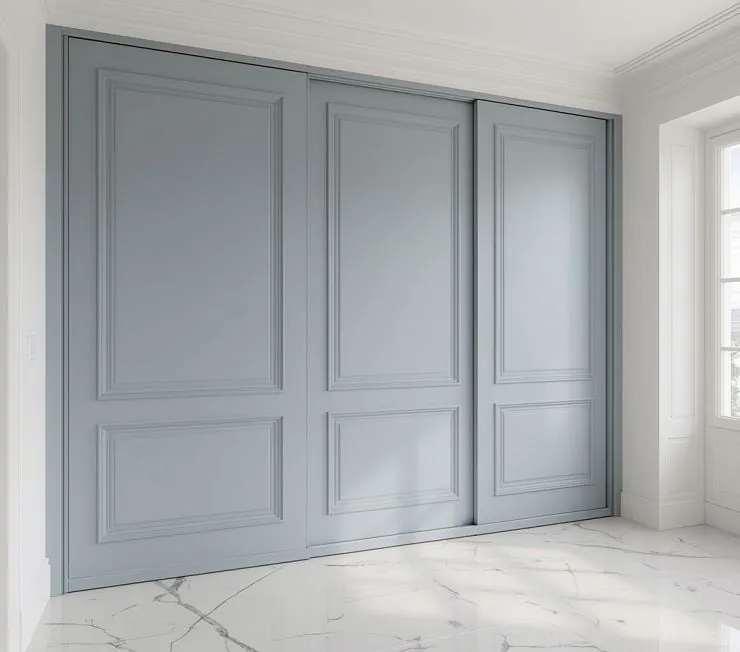 Классический встроенный шкаф-купе с трёхдверным фасадом в неоклассике