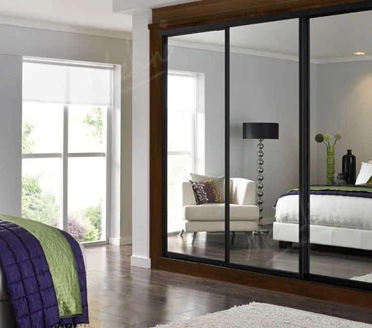 Шкаф из ЛДСП, фасад из зеркала серебро, профиль алюминиевый