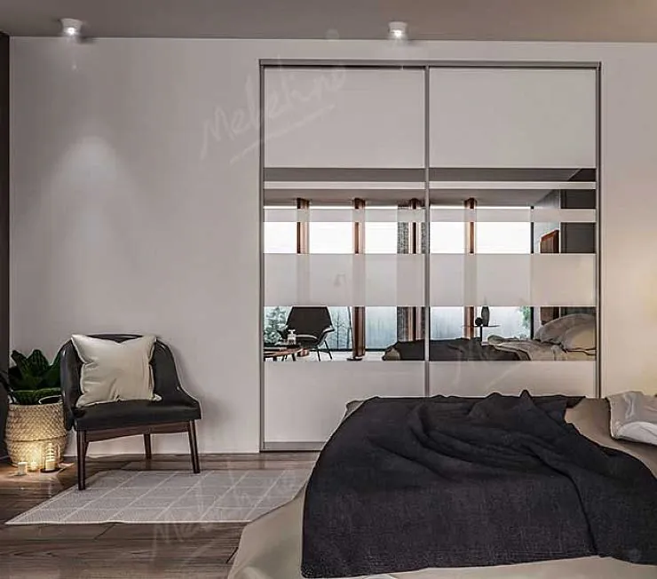 Впечатляющие размеры и вместительность модели не уступают ее стильному внешнему виду. Оригинальное сочетание матового глянца и зеркальных элементов различной толщины визуально увеличивает размеры помещения. Встроенный шкаф будет отлично смотреться в просторной гостиной или спальне. Материал корпуса - ЛДСП "Egger", фасады - с зеркальными вставками. Изготовление - на заказ, под размеры ниши.