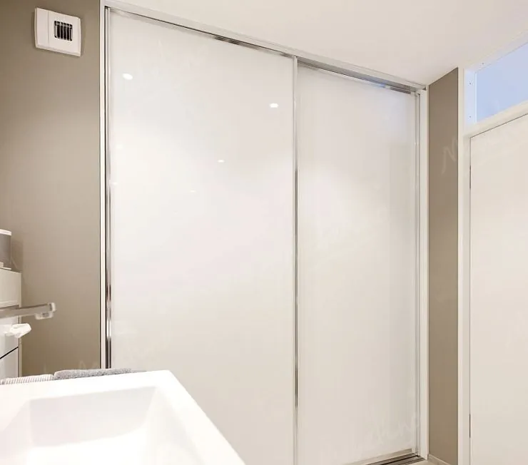 Шкаф из ЛДСП, фасад из стекла в пленке, профиль алюминиевый