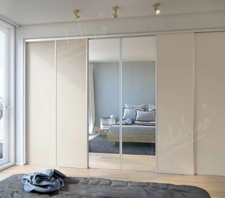 ЛДСП, вставка из зеркала серебро, алюминиевая рама