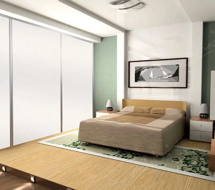 Полный комплект меблировки спальни в едином элегантном исполнении. Корпуса выполнены из австрийского премиум-ЛДСП, фасады тумб и шкафа купе - МДФ в матовой эмали. Практичная система хранения с алюминиевым профилем оборудована фурнитурой Hettich. Внутреннее наполнение включает зону со штангой, выдвижные ящики, ниши для обуви и антресольное пространство. Эксклюзивное производство под размеры комнаты.