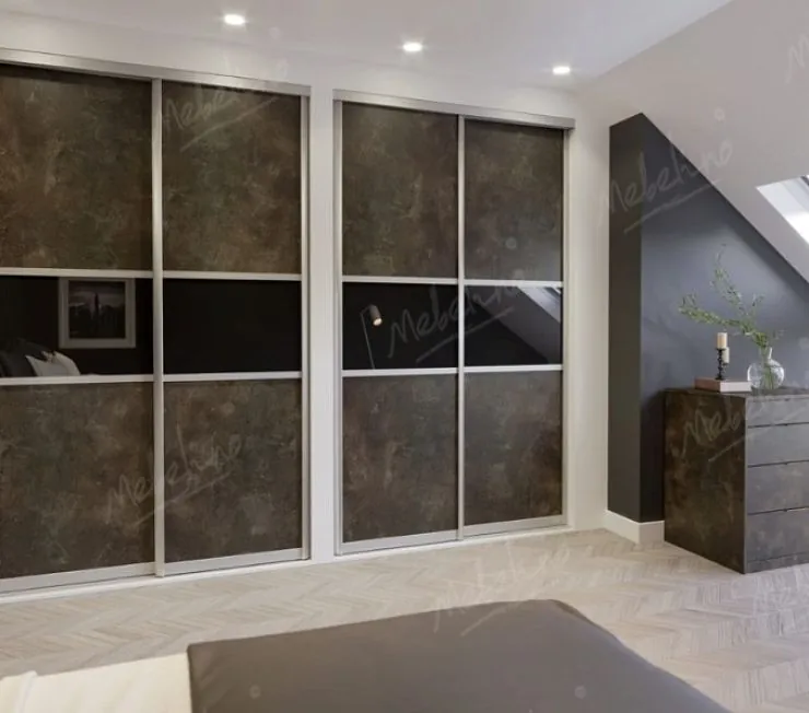 Матовая поверхность, вставки из стекла в пленке, алюминиевый профиль и оригинальность исполнения – привлекают покупателей, ценящих изысканность и креативную простоту.