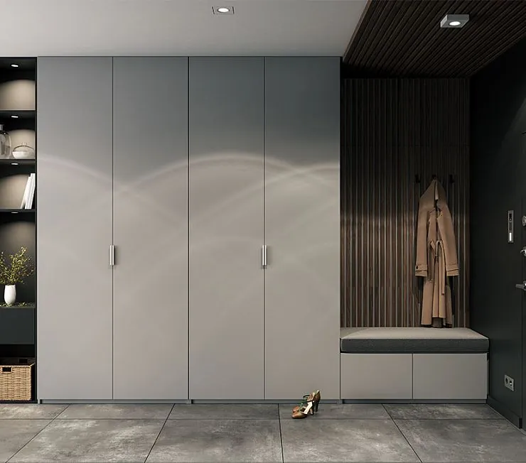 В процессе замера вам покажут образцы материалов, зададут дополнительные вопросы, проконсультируют по внутреннему наполнению. Также подскажем по розеткам, люкам для доступа к электрике или коммуникациям.