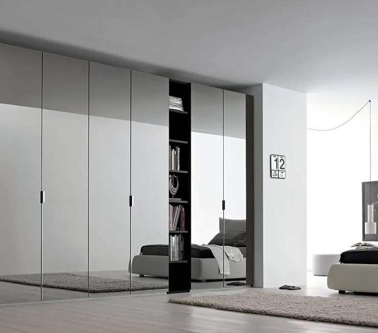 Корпус шкафа выполнен из ЛДСП, дверцы – из зеркала. Изделие можно купить любой глубины, высоты и ширины (длину рекомендуем делать не более 3 метров).